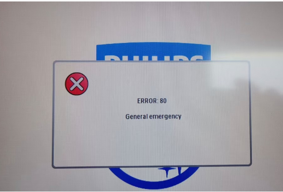 故障现象:飞利浦胃肠机开机报ERROR:80和ERROR:105错误,控制盒上没有显示胃肠机的各个部位的参数状态界面。